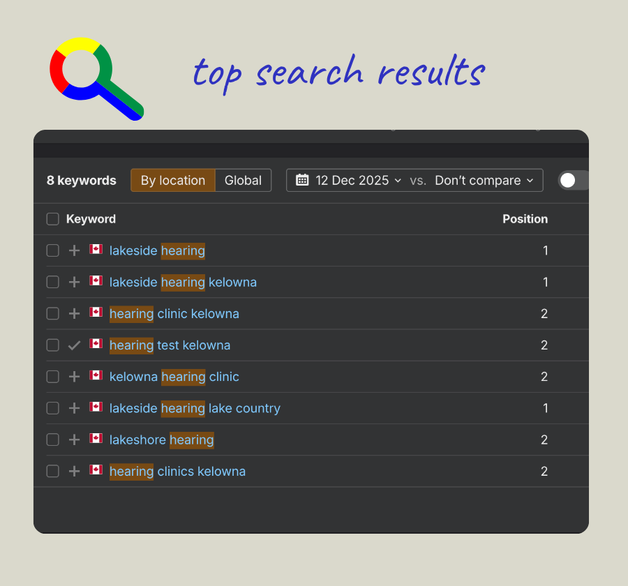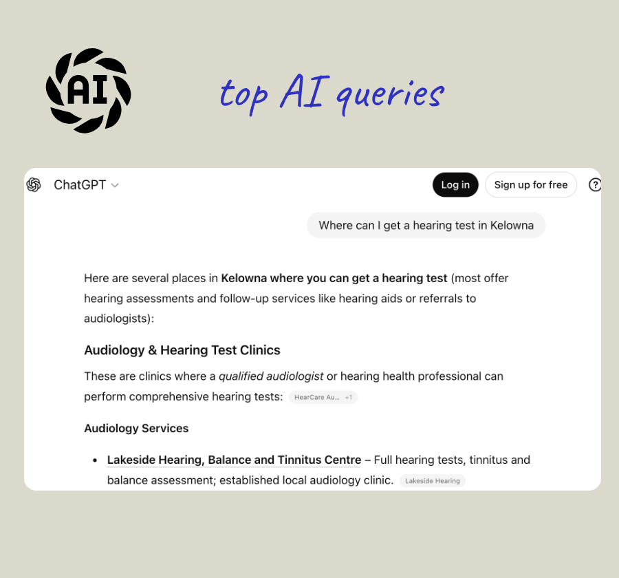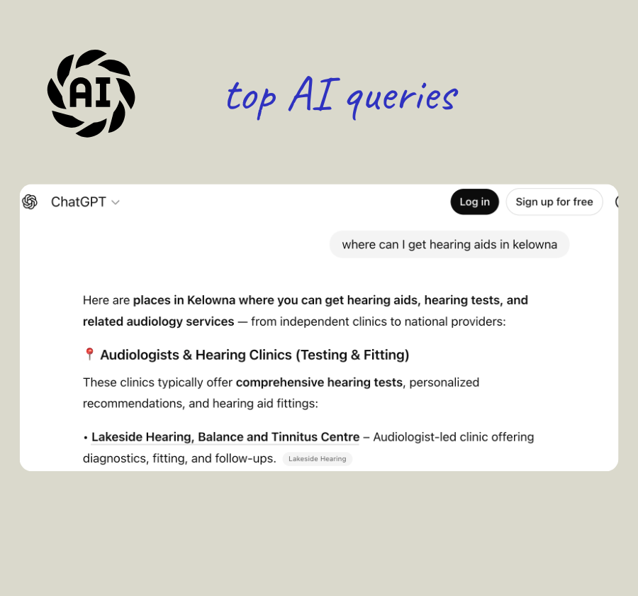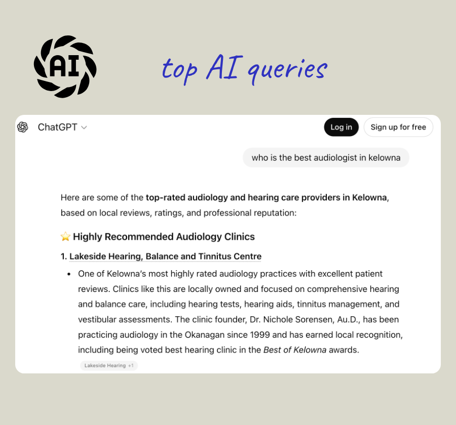 At Lakeside Hearing, this approach has consistently placed the clinic at the top of key regional search results and surfaced it prominently within AI responses when people ask where to find hearing care locally.